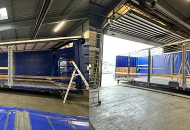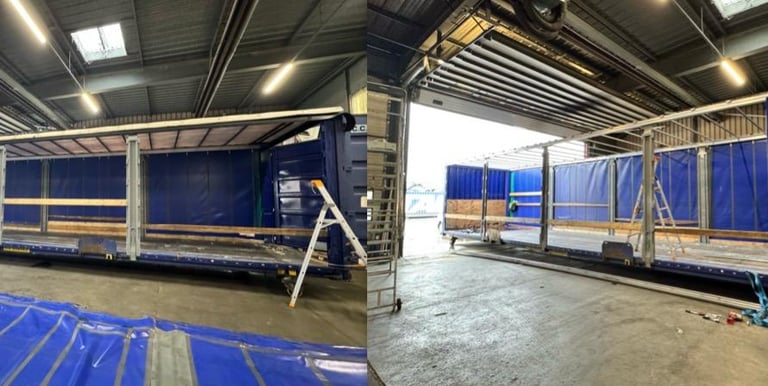 Rénovation de caisses mobiles et containers bâchés : remise en état de structures, châssis, bâches et fermetures.