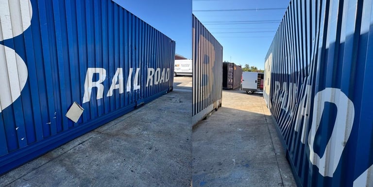 Réparation de containers maritimes : redressage, soudure, remplacement de panneaux, chaudronnerie.